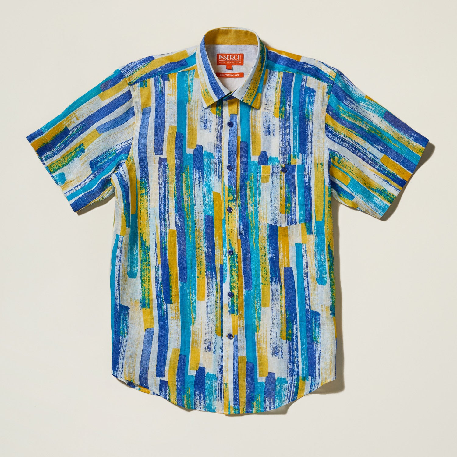 100% Premium European flax linen short-sleeve shirt in an abstract brushstroke print