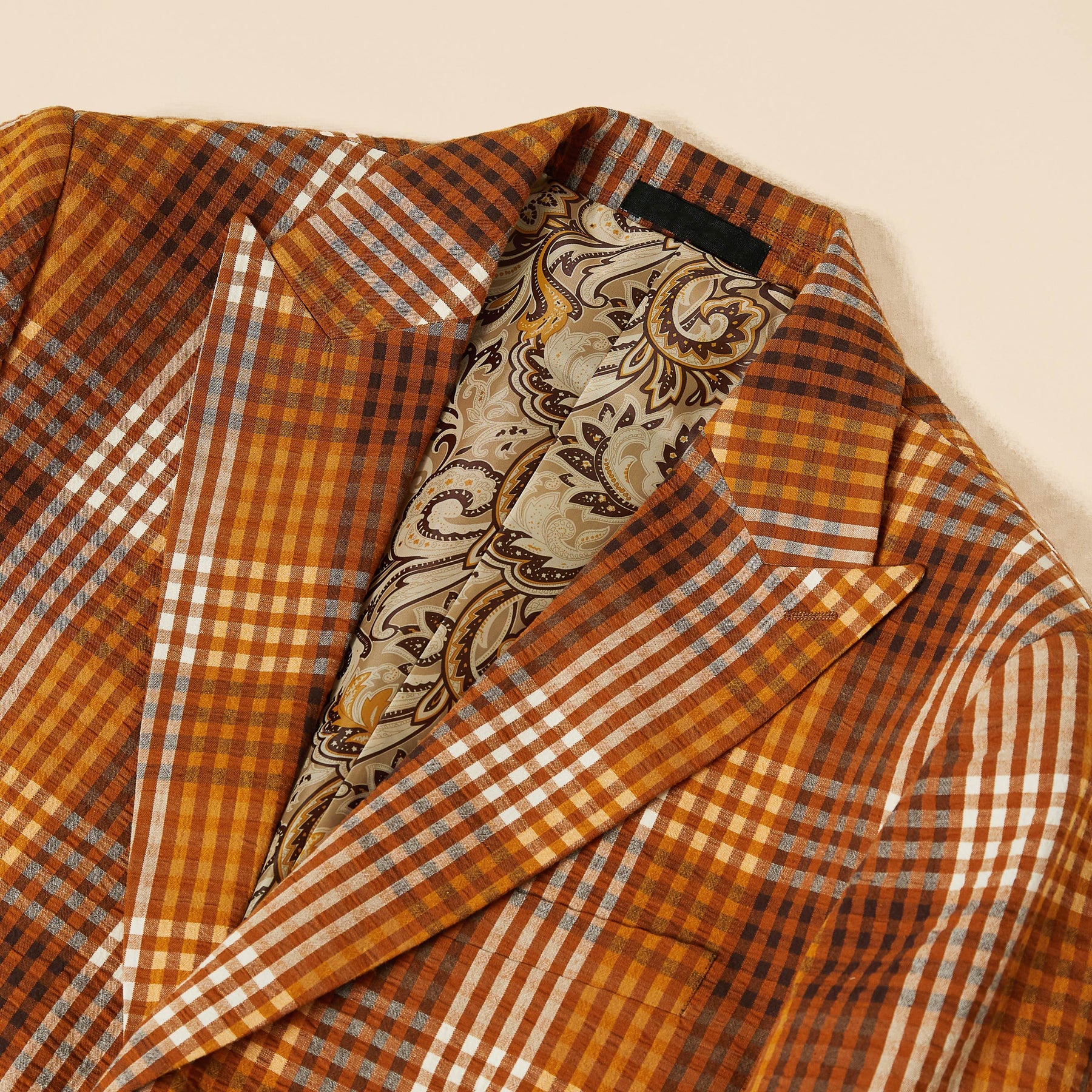 100% Premium Cotton seersucker gingham yarn-dyed blazer.