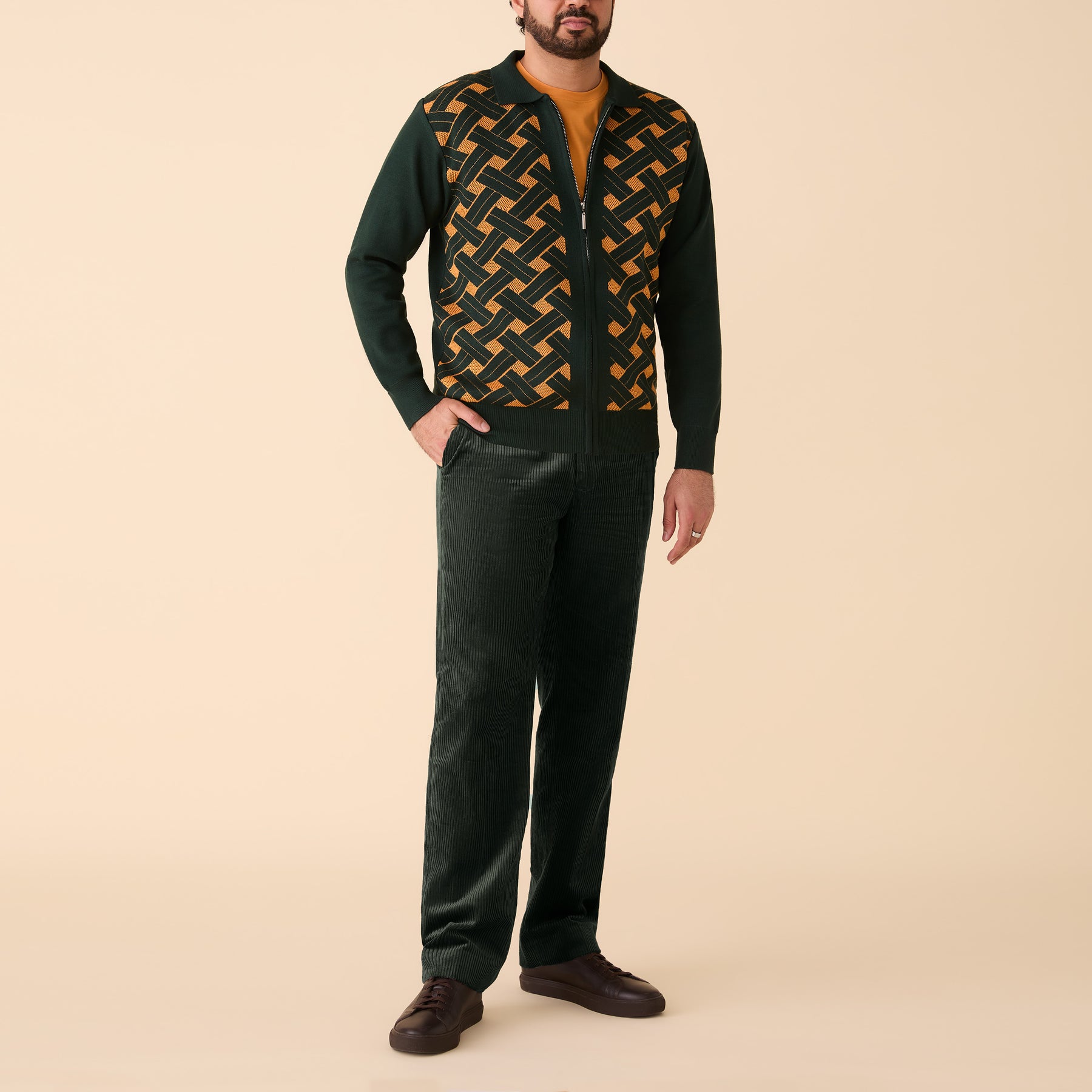 Flat front chino body corduroy pant.